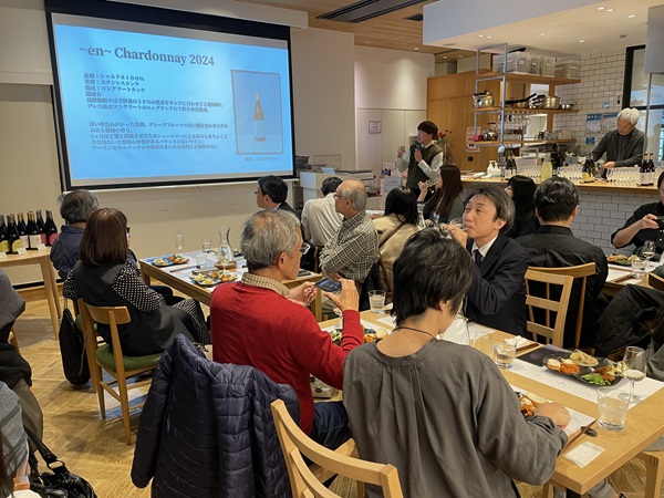 当日は、ワイナリーを代表する数種類のワインをテイスティングしながら、小船さんと花岡氏とによるお話に参加者の皆さまは熱心に耳を傾け、和やかな交流の時間が生まれました。ワインを通じて人と人がつながる、銀座NAGANOならではの温かなひとときとなりました。